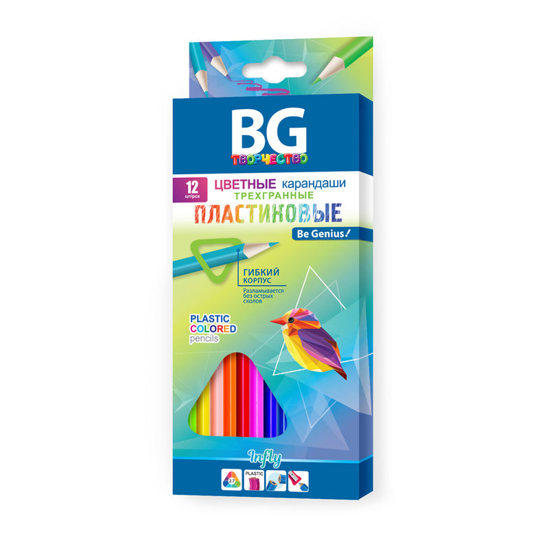 Карандаши цветные BG "Infly", 12цв., шестигранные пластиковые, 2,7мм, европодвес