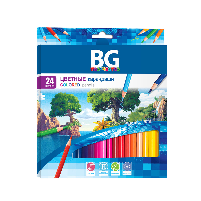 Карандаши цветные BG "Wonderland", 24цв., шестигранные, 3,0мм, европодвес