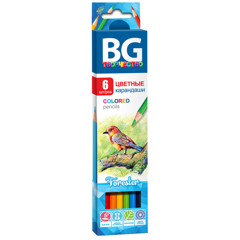Карандаши цветные BG "Forester", 06цв, шестигранные, 2,8мм