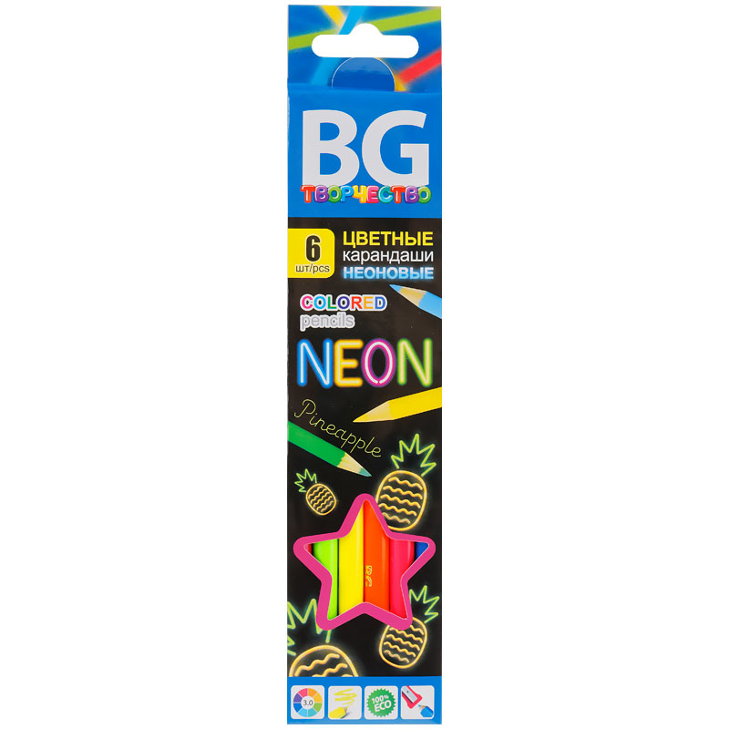 Карандаши цветные BG "Neon", 06цв., круглые, 3,0мм, европодвес