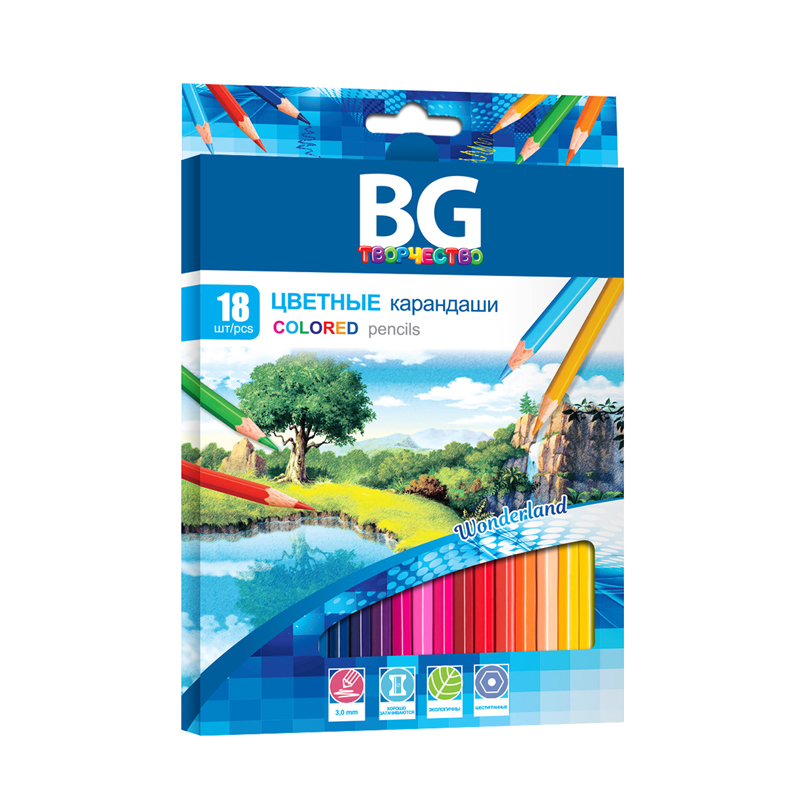 Карандаши цветные BG "Wonderland", 18цв., шестигранные, 3,0мм, европодвес