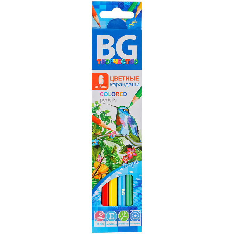 Карандаши цветные BG "Tropic", 06цв, шестигран., 3,0мм, европодвес