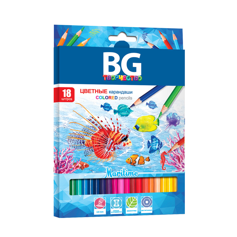 Карандаши цветные BG "Maritime", 18цв., шестигранные, 2,8мм, европодвес