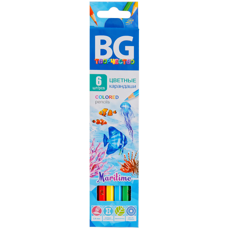 Карандаши цветные BG "Maritime", 06цв., шестигранные, 2,8мм