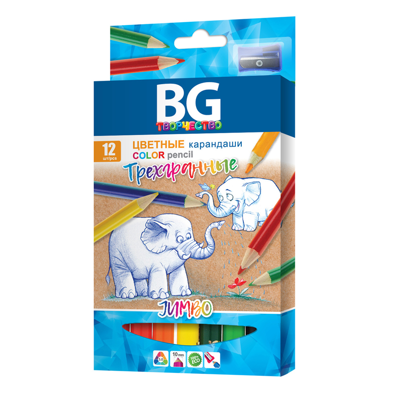 Карандаши цветные BG "Jumbo", 12цв., трехгранные, 5,0мм, европодвес