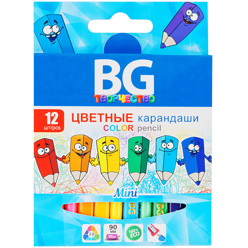 Карандаши цветные BG "Mini", 12цв., трехгранные, 3,0мм, заточенные, европодвес