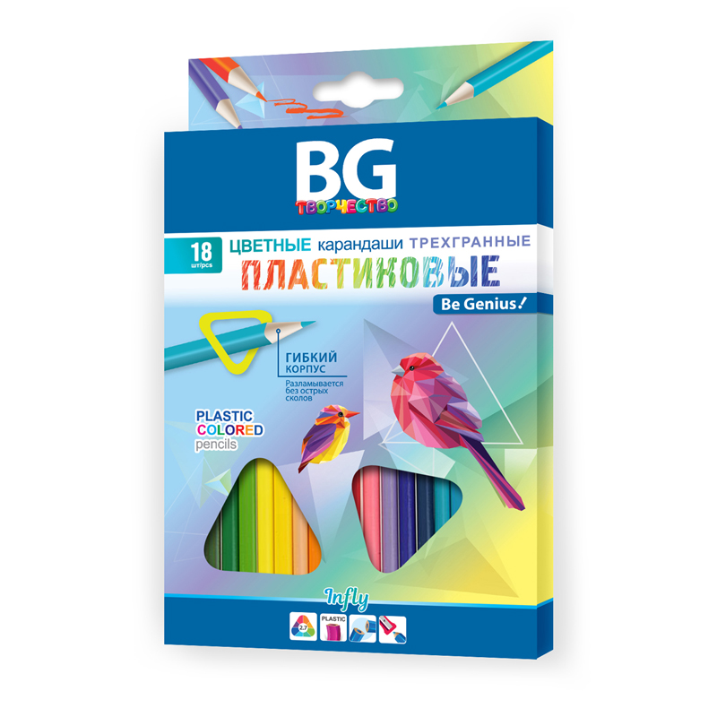 Карандаши цветные BG "Infly", 18цв., трехгранные пластиковые, 2,7мм, европодвес