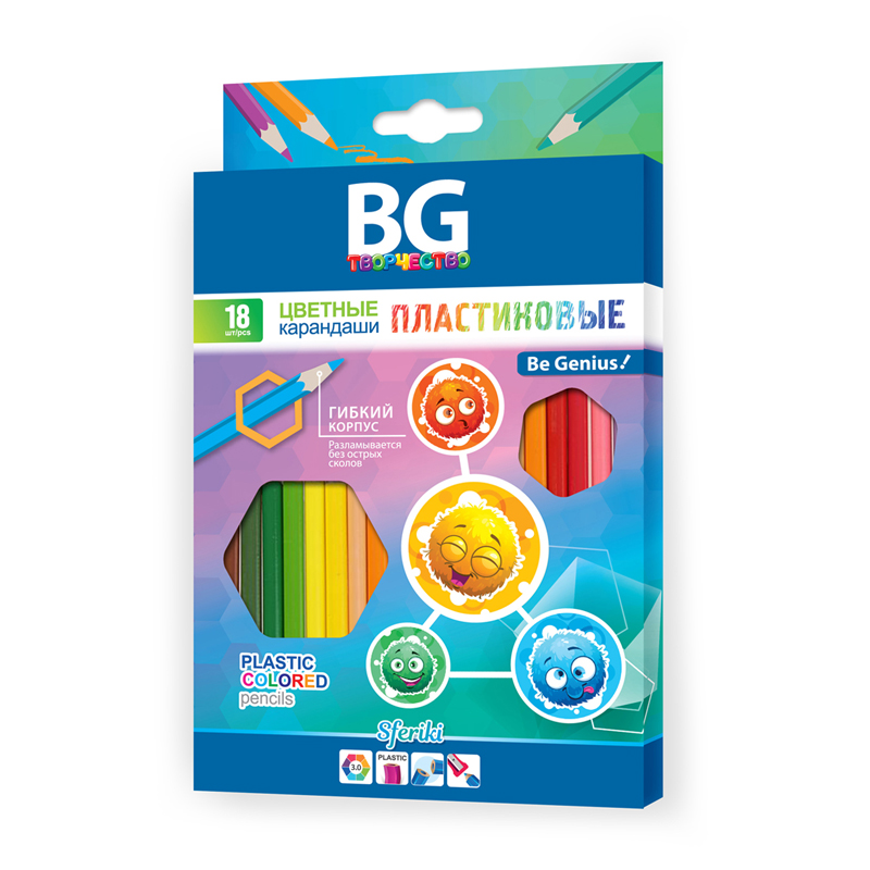 Карандаши цветные BG "Sferiki", 18цв., шестигранные пластиковые, 2,7мм, европодвес