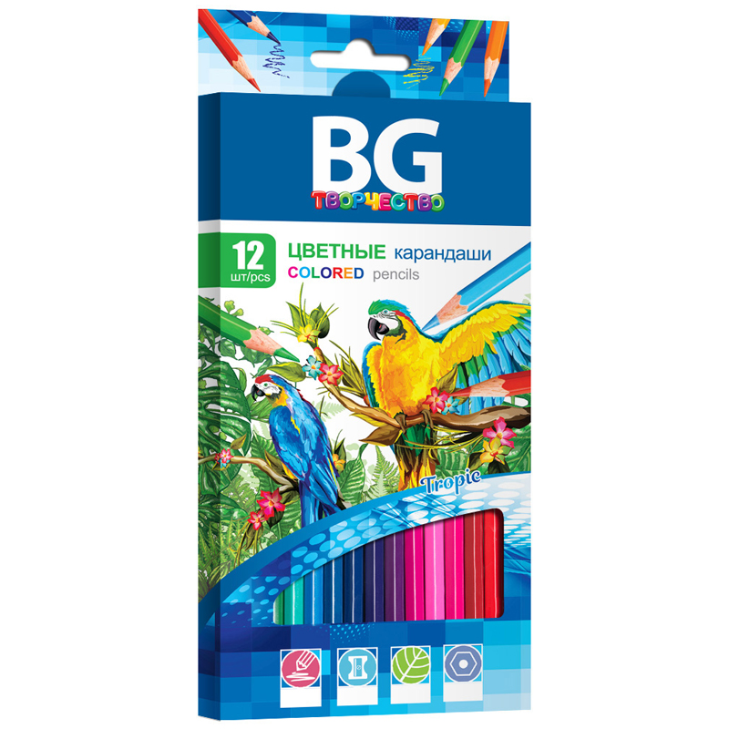 Карандаши цветные BG "Tropic", 12цв., шестигранные, пластиковые, 3,0мм, европодвес