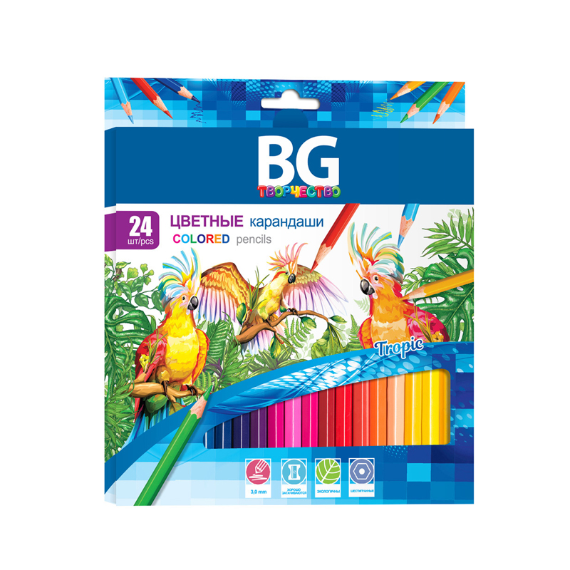 Карандаши цветные BG "Tropic", 24цв., шестигранные, 3,0мм, европодвес