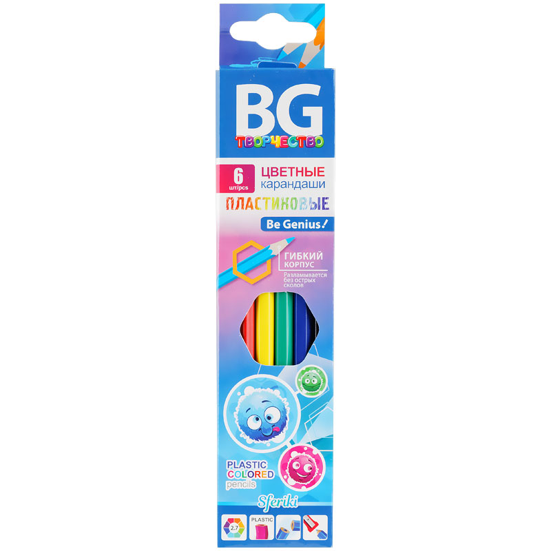Карандаши цветные BG "Sferiki", 06цв., шестигран., пластиковые, 2.7мм, европодвес