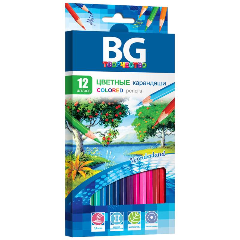 Карандаши цветные BG "Wonderland", 12цв., шестигранные, 3,0мм, европодвес