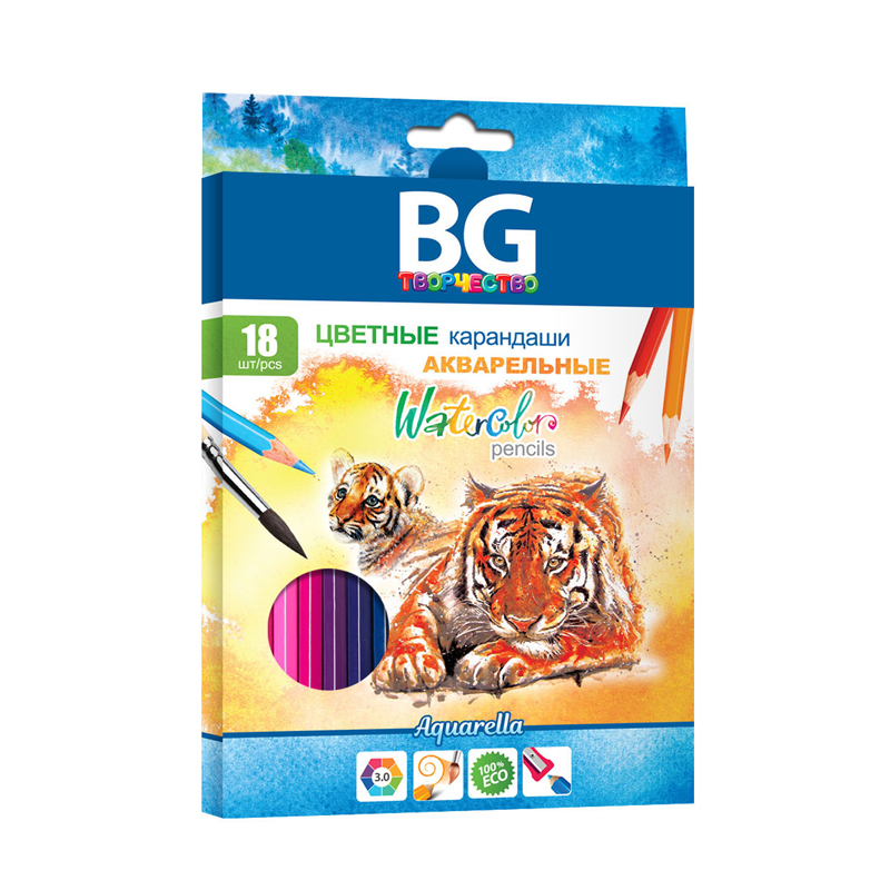 Карандаши акварельные BG "Aquarella", 18цв., шестигранные, заточен., европодвес