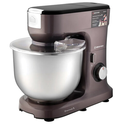 Миксер планетарный BRAYER BR1501, 1200 Вт, 10 скоростей, 3 насадки, металлическая чаша 8 л, коричневый