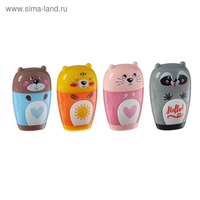 Точилка 1 отверстие с контейнером и ластиком "Зверушки", микс