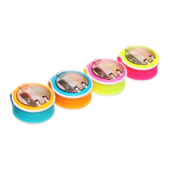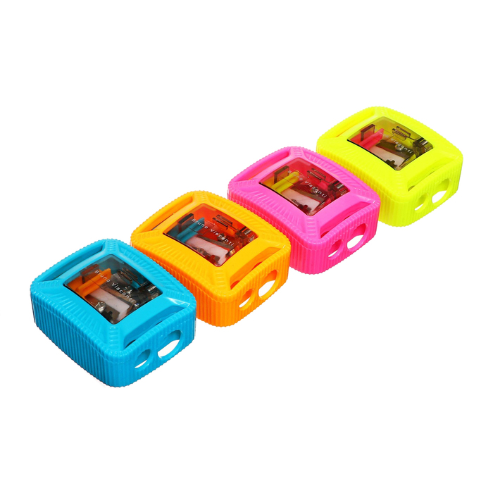 Точилка 2 отверстия с контейнером Happysharp, металлический корпус с термопереноской, МИКС
