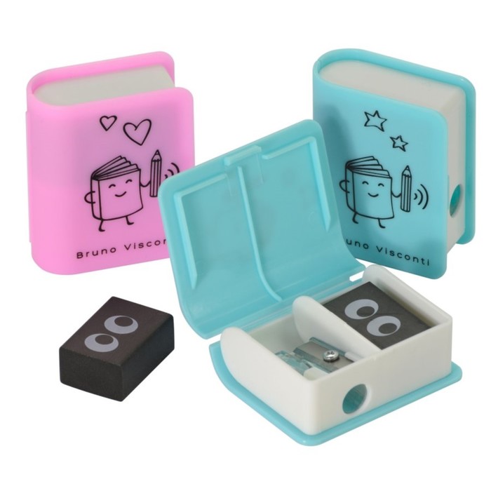 Точилка одно отверстие FUNSHARP "Книга", с ластиком, в контейнере, МИКС