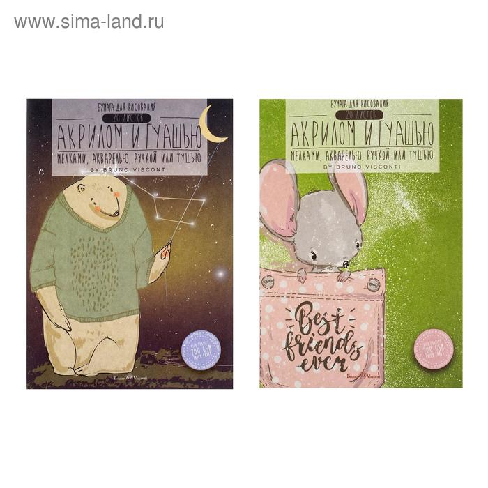 Бумага для гуаши, акрила, акварели А5, 20 листов в папке, блок 200 г/м2, МИКС