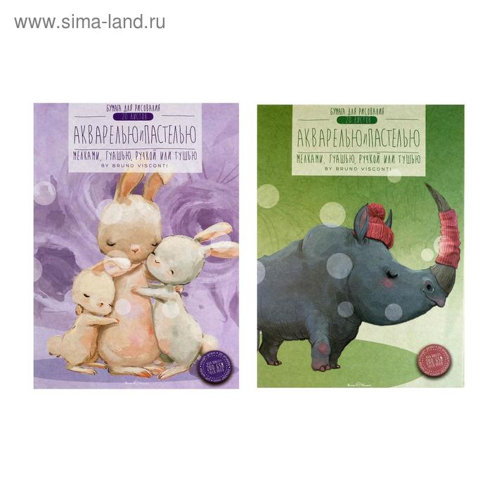 Бумага для акварели, пастели А4, 20 листов, блок 200 г/м2, в папке, МИКС