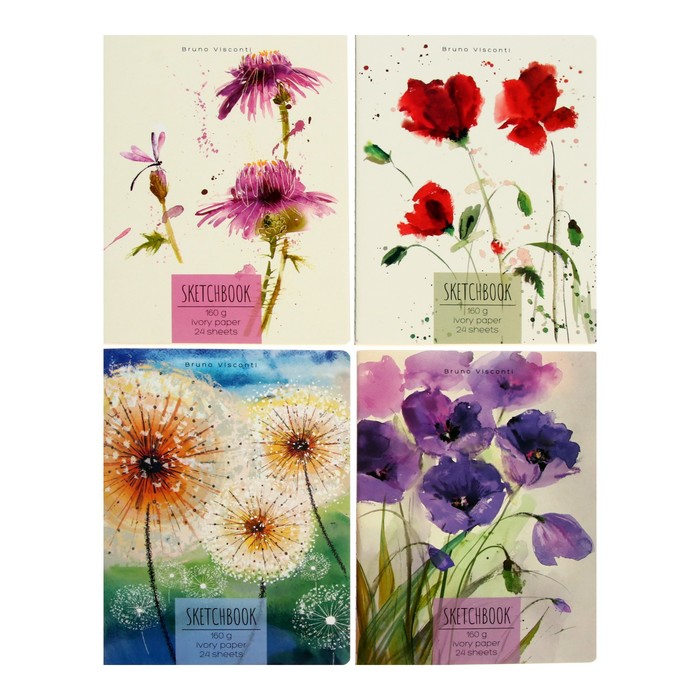 Скетчбук 188 х 259 мм, 24 листа прошитых Bruno Visconti, бежевый блок 160 г/м2, МИКС