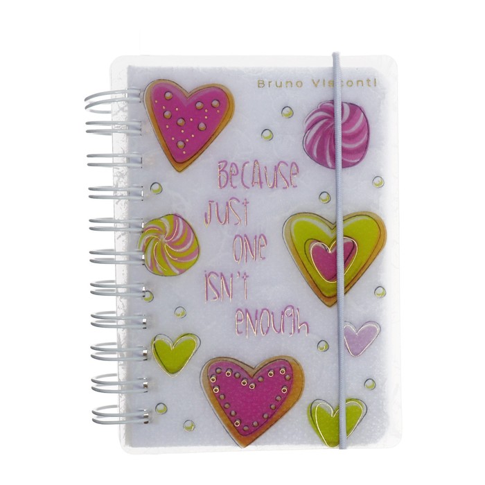Записная книжка А7, 80 листов в клетку/линейку/точку на гребне "Сладкое настроение. Сердечки", пластиковая обложка, с резинкой