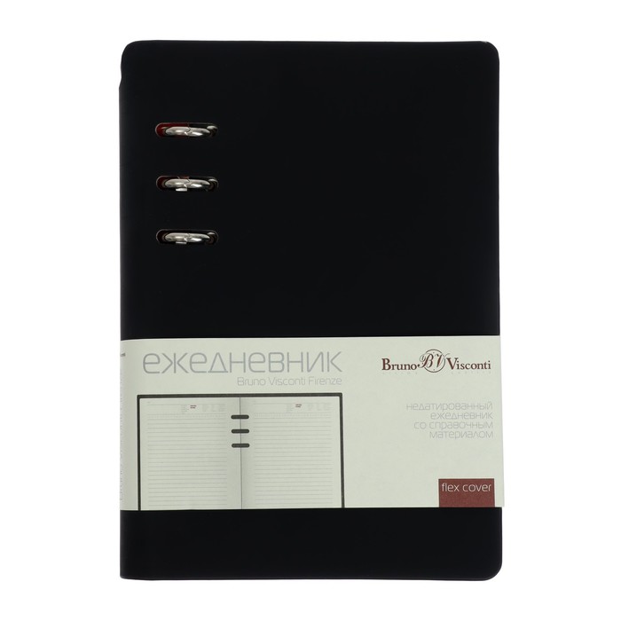 Ежедневник недатированный А5, 120 листов на кольцах FIRENZE, обложка искусственная кожа, блок 70г/м2, чёрный