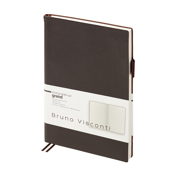 Ежедневник недатированный А5, 128 листов, GRAND, интегральная обложка из искусственной кожи, ляссе, кремовый блок 80 г/м2, коричневый