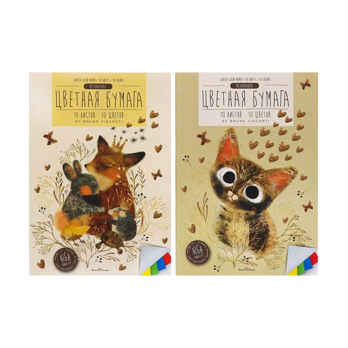 Бумага цветная А4, 10 листов, 10 цветов BrunoVisconti, МИКС