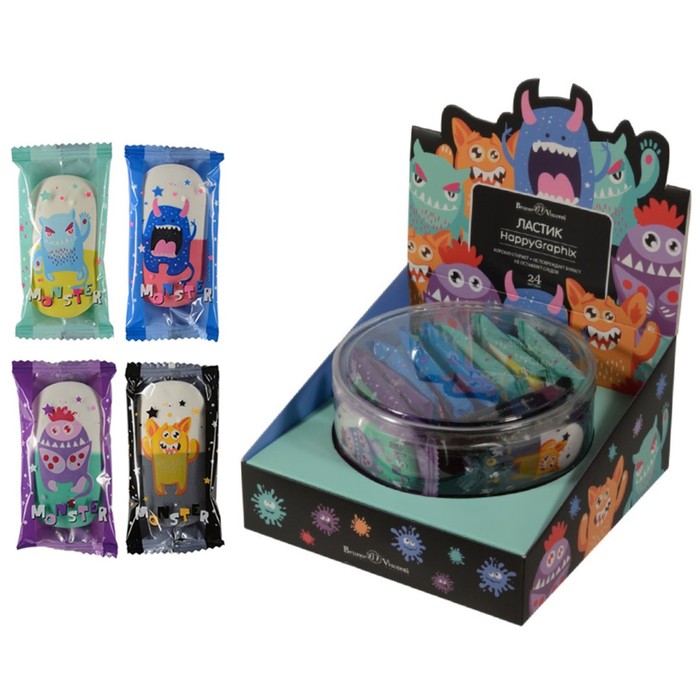 Ластик HappyGraphix "Монстрики", МИКС