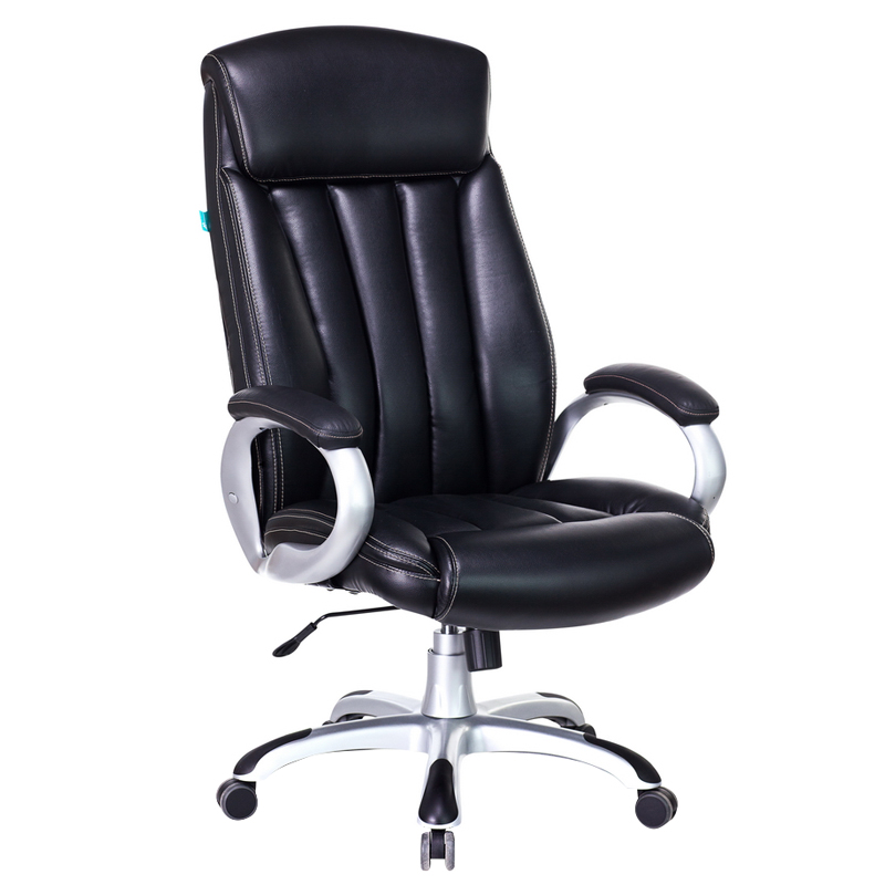 Кресло руководителя Бюрократ T-9923SL/BLACK, черный, кожа, крестовина хром (до 200кг)
