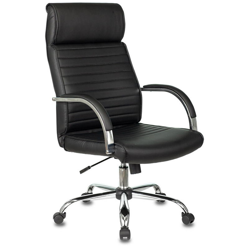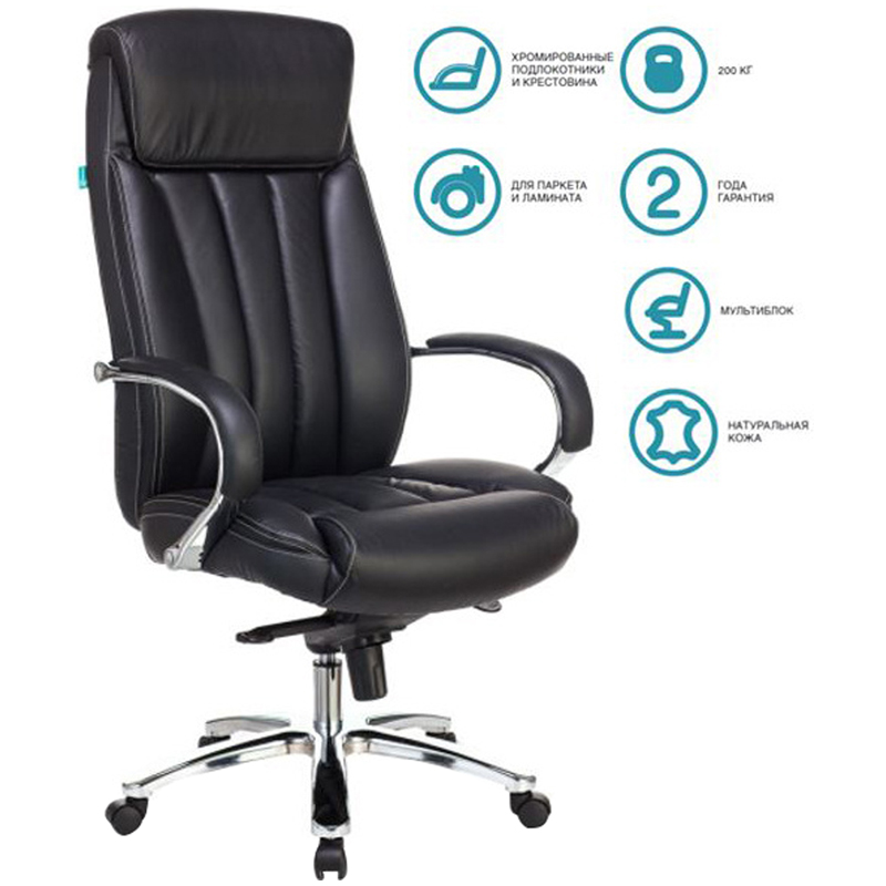 Кресло руководителя Бюрократ T-9925SL/BLACK, черный, кожа, крестовина хром (до 200кг)