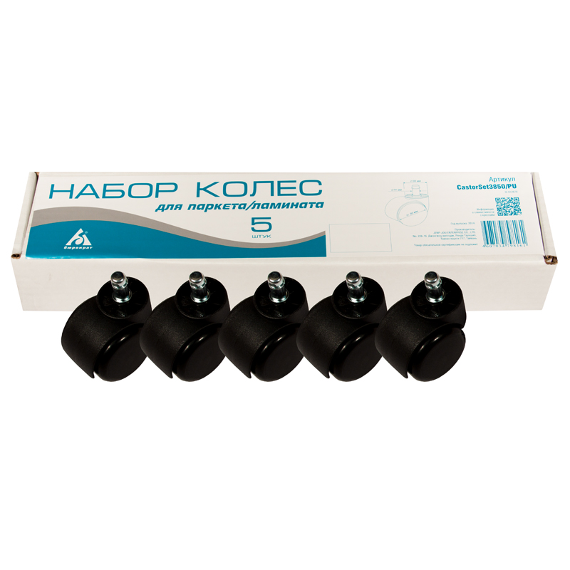 Колеса (ролики) для кресла, шток 11мм, CastorSet3850/PU, 5шт., для паркета/ламината