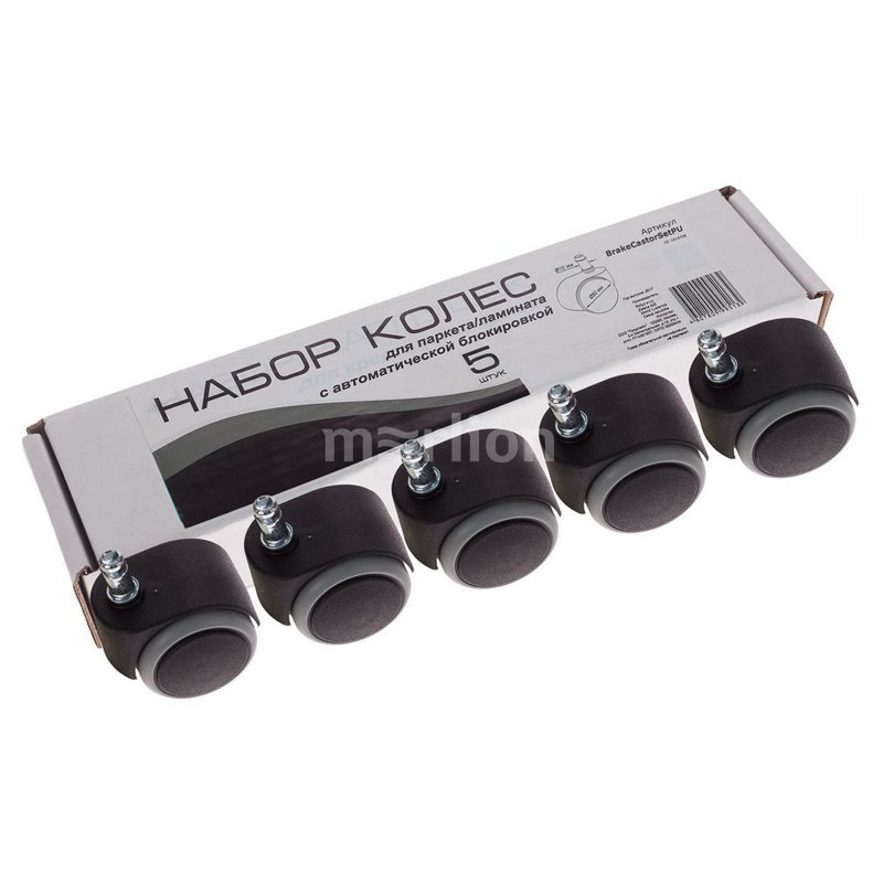 Колеса (ролики) для кресла, шток 10мм, BrakeCastorSetPU, 5шт., для паркета/ламината,с авт. блокиров.