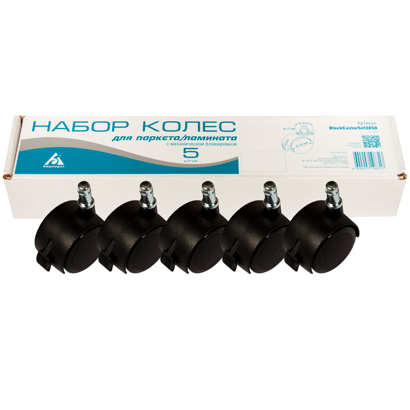 Колеса (ролики) для кресла, шток 11мм, BlockCastorSet3850, 5шт., для паркета/ламината, с мех. блокир.