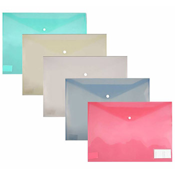 Папка на кнопке " Бюрократ " БОЛЬШОЙ ФОРМАТ A3 ассорти, пластик 0,18мм, карман для визитки