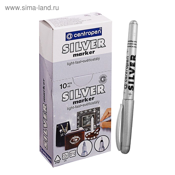 Маркер перманентный для декора 3.8 мм Centropen 2690, линия 1,5 - 3,0 мм, цвет серебристый