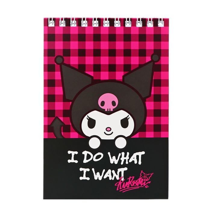 Блокнот А6, 60 листов в клетку на гребне Kuromi, обложка целлюлозный картон, блок офсет