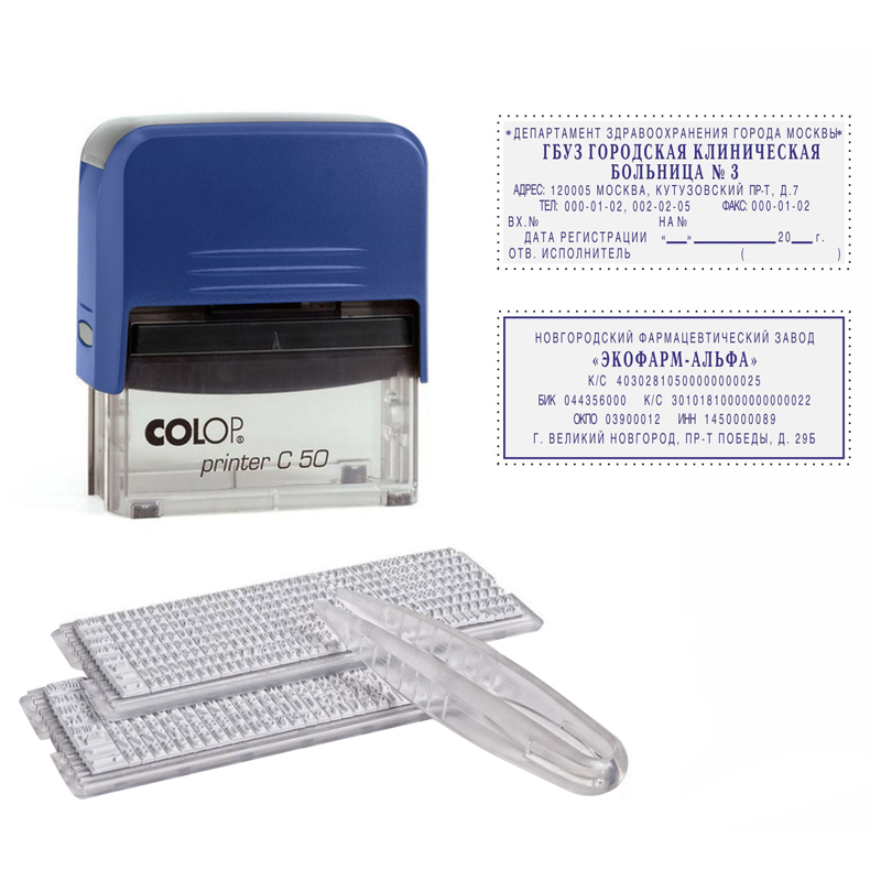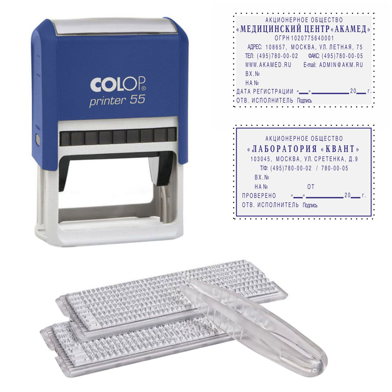 Штамп самонаборный Colop, 10стр. б/рамки, 8стр. с рамкой, 2 кассы, пластик, 40*60мм
