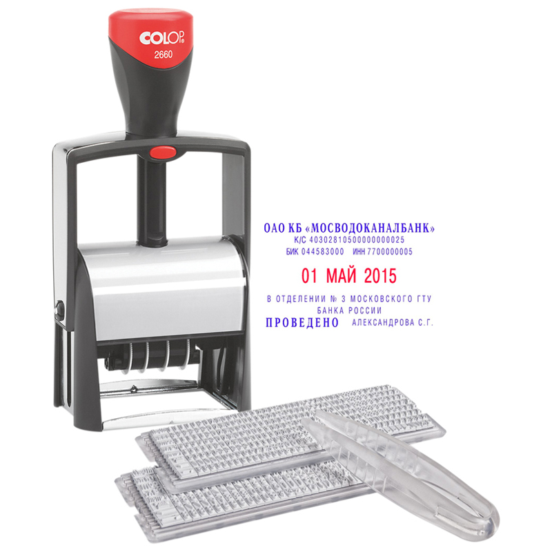 Датер самонаборный Colop, металл, 6стр. б/рамки, 4стр. с рамкой, 4мм, 2 кассы
