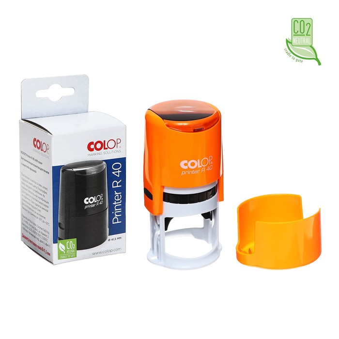 Оснастка для круглой печати автоматическая COLOP Printer R40, диаметр 41.5 мм, с крышкой, корпус оранжевый неон