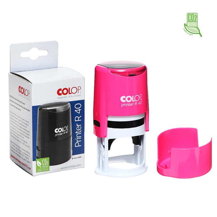 Оснастка для круглой печати автоматическая COLOP Printer R40, диаметр 41.5 мм, с крышкой, корпус розовый неон