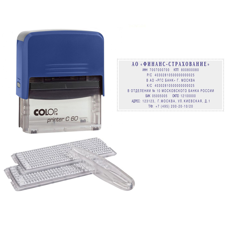 Штамп самонаборный Colop, с персонализацией 6стр. б/рамки, 4стр. с рамкой, 2 кассы, пластик, 23*59мм