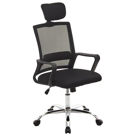 Кресло CROMEX Debut CH-697, ХРОМ, с подлокотниками, мех. качания, сетка, черное, ткань, 533068