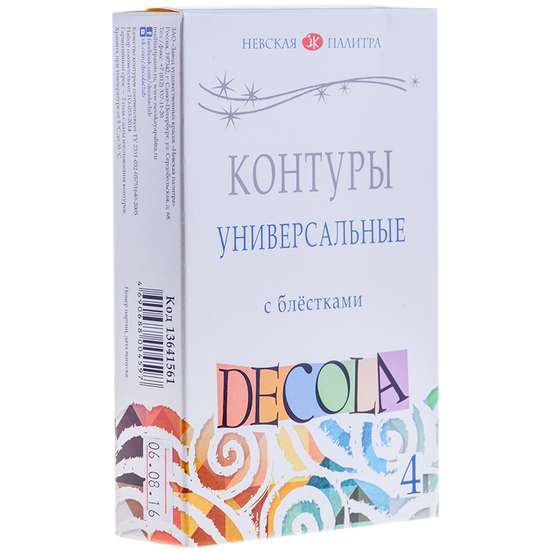 Контуры акриловые универсальные Decola, 04 цвета, 18мл, картон