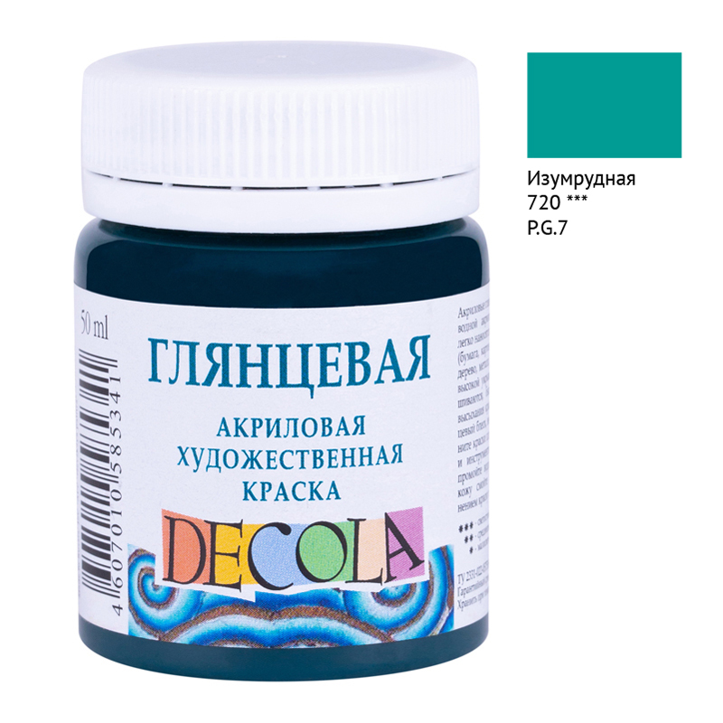 Краска акриловая художественная Decola, 50мл, глянцевая, баночка, изумрудный
