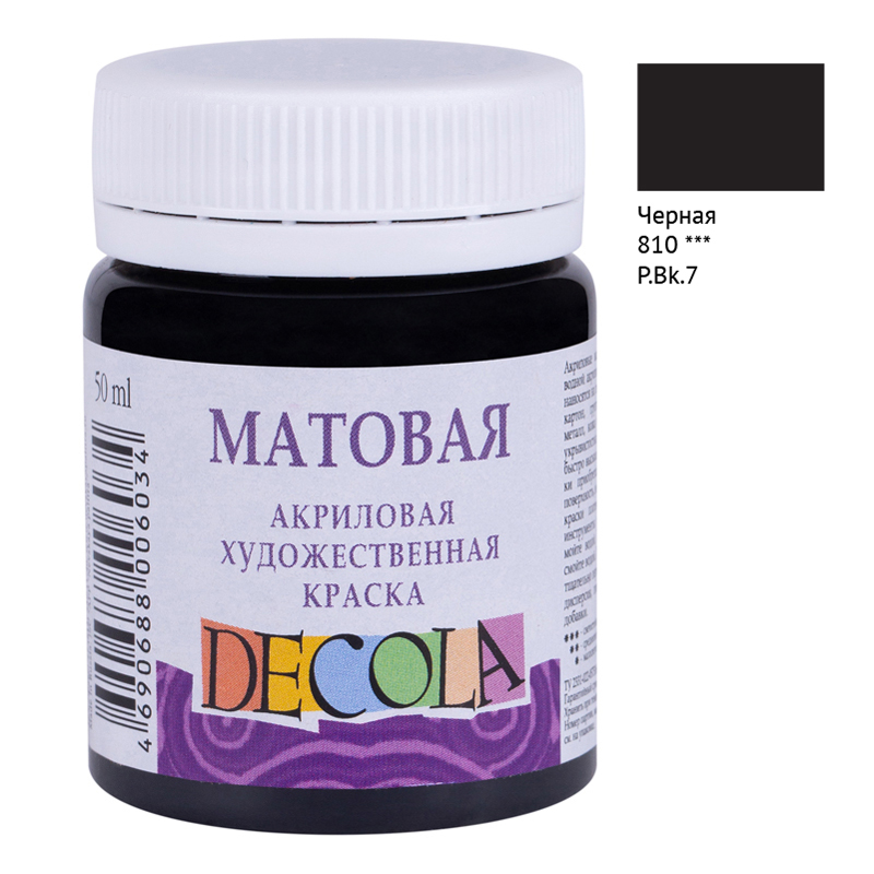Краска акриловая художественная Decola, 50мл, матовая, баночка, черный