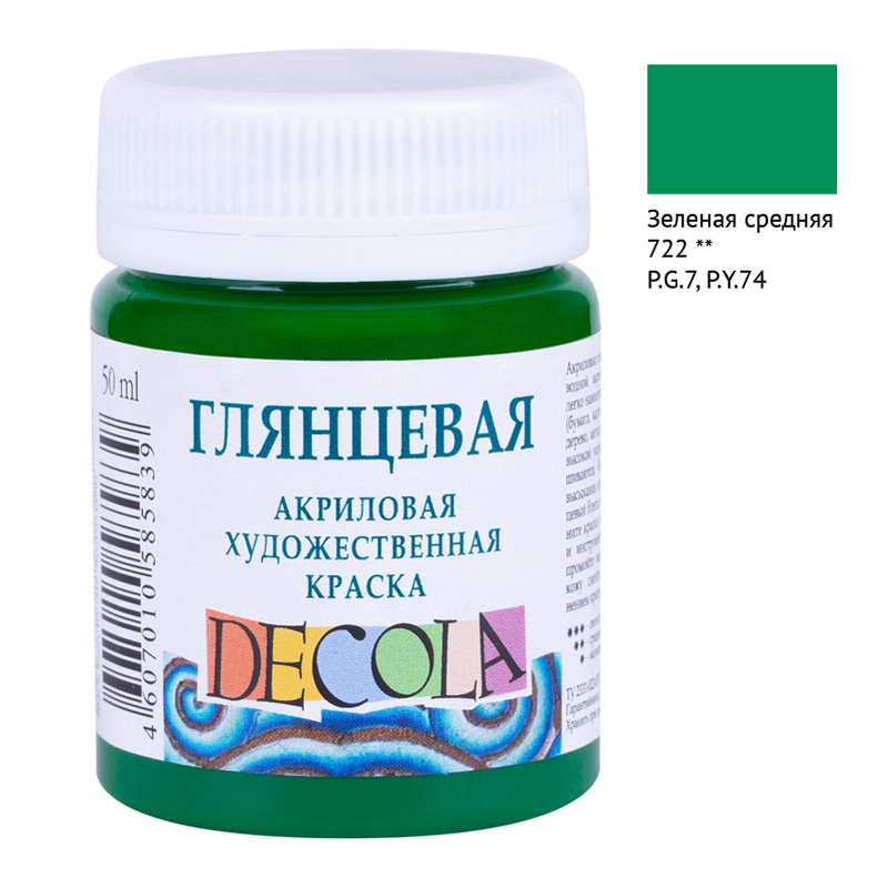 Краска акриловая художественная Decola, 50мл, глянцевая, баночка, зеленый средний