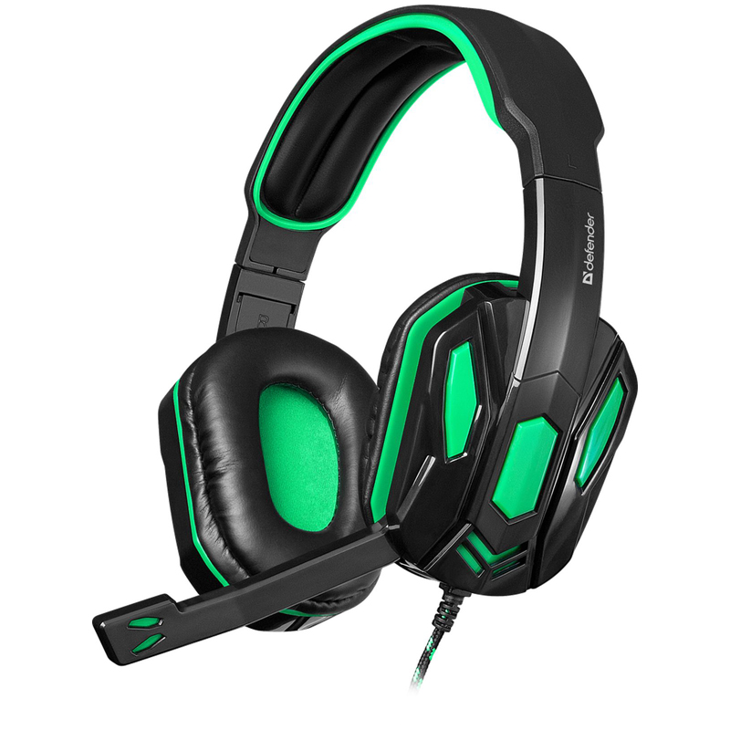 Игровая гарнитура Warhead G-275 зеленый + черный, кабель 1,8 м DEFENDER