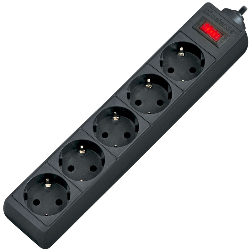 Сетевой фильтр DEFENDER ES, 5 розеток, 1,8 м, черный, 99484