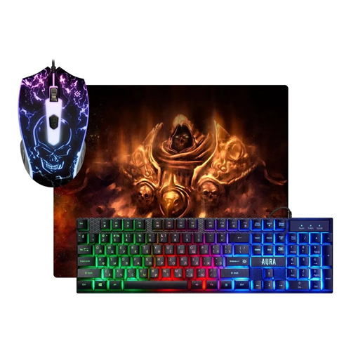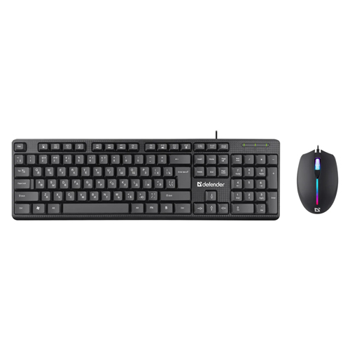 Набор клавиатура и мышь проводной " Defender " Aura MKP-117 чёрный, мембранная, проводная оптическая, коврик, USB, 2400 DPI, RGB подсветка, картонная упаковка